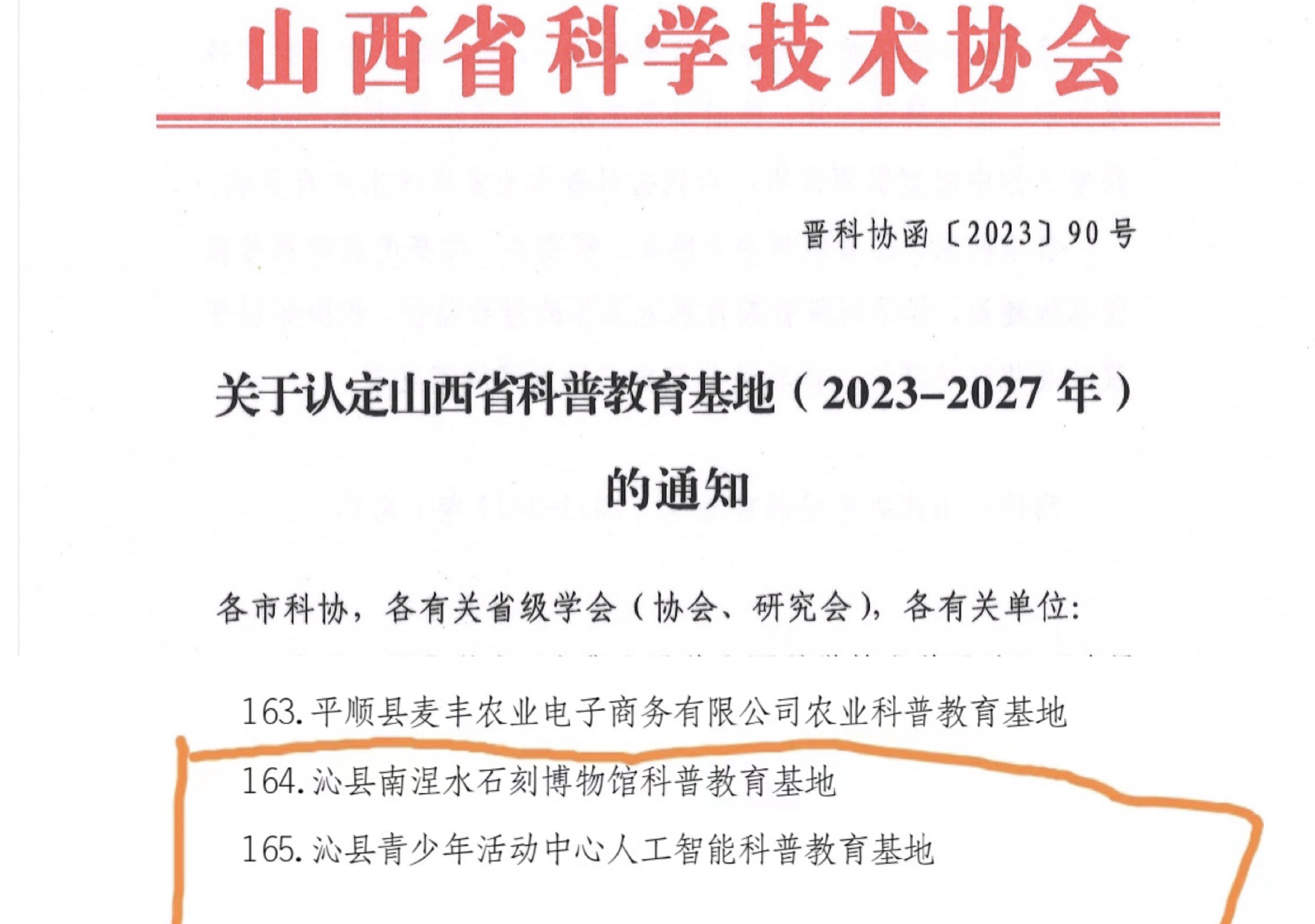 經沁縣科協積極申報推薦,我縣今年又有3個科普基地被認定為山西省科普教育基地。分別是:沁縣南涅水石刻博物館科普教育基地、沁縣青少年活動中心人工智能科普教育基地、沁縣沁谷香農業開發有限公司農業科普教育基地。