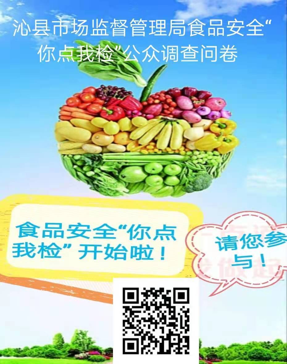 掃描下方二維碼,參與填寫沁縣市場監督管理局食品安全“你點我檢”公眾調查問卷。