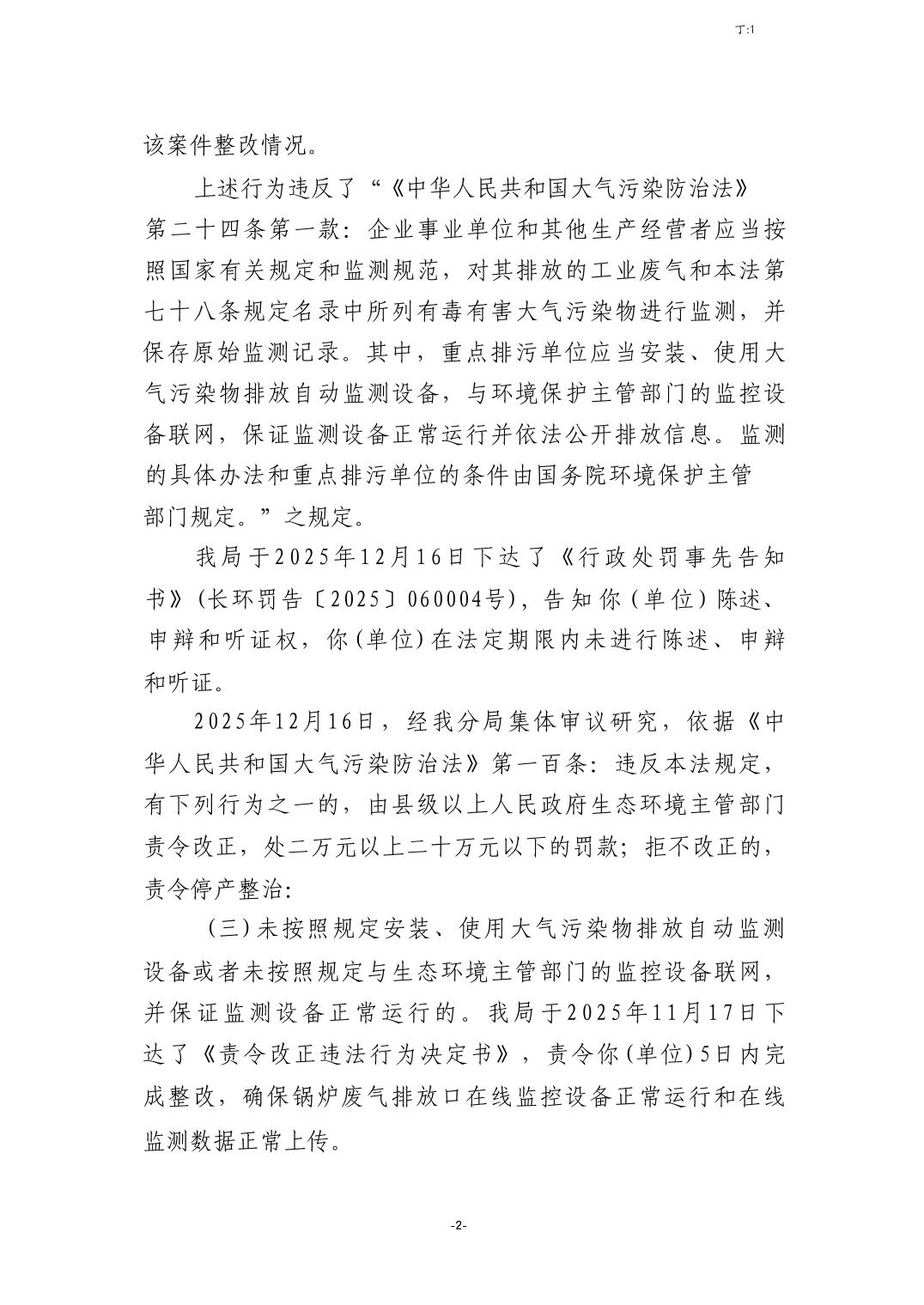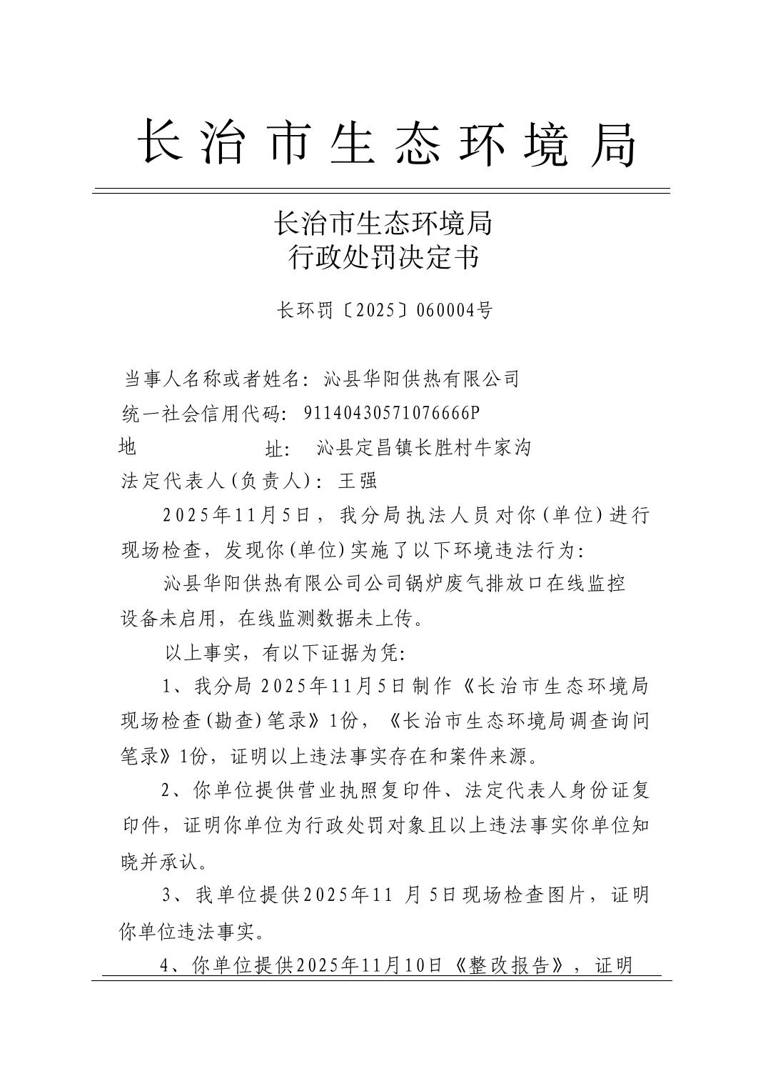 標題長治市生態環境局行政處罰決定書