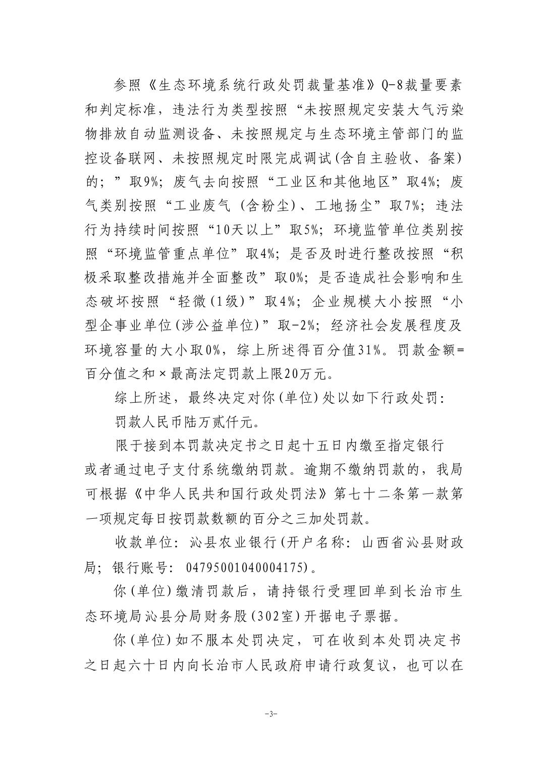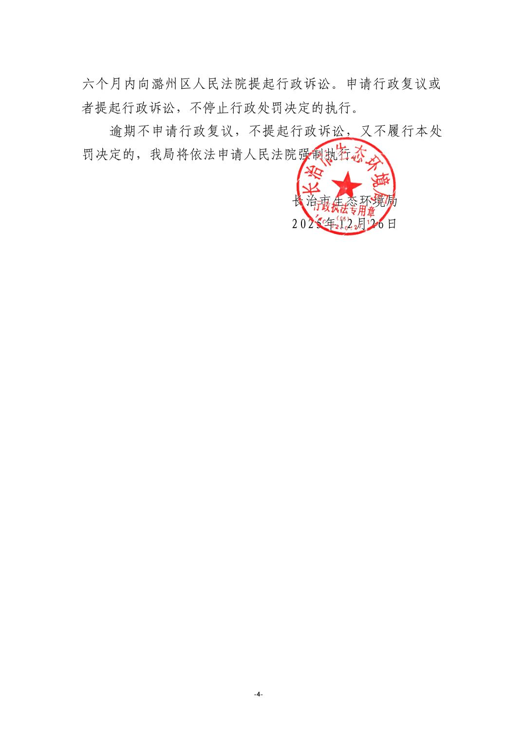 長治市生態環境局行政處罰決定書