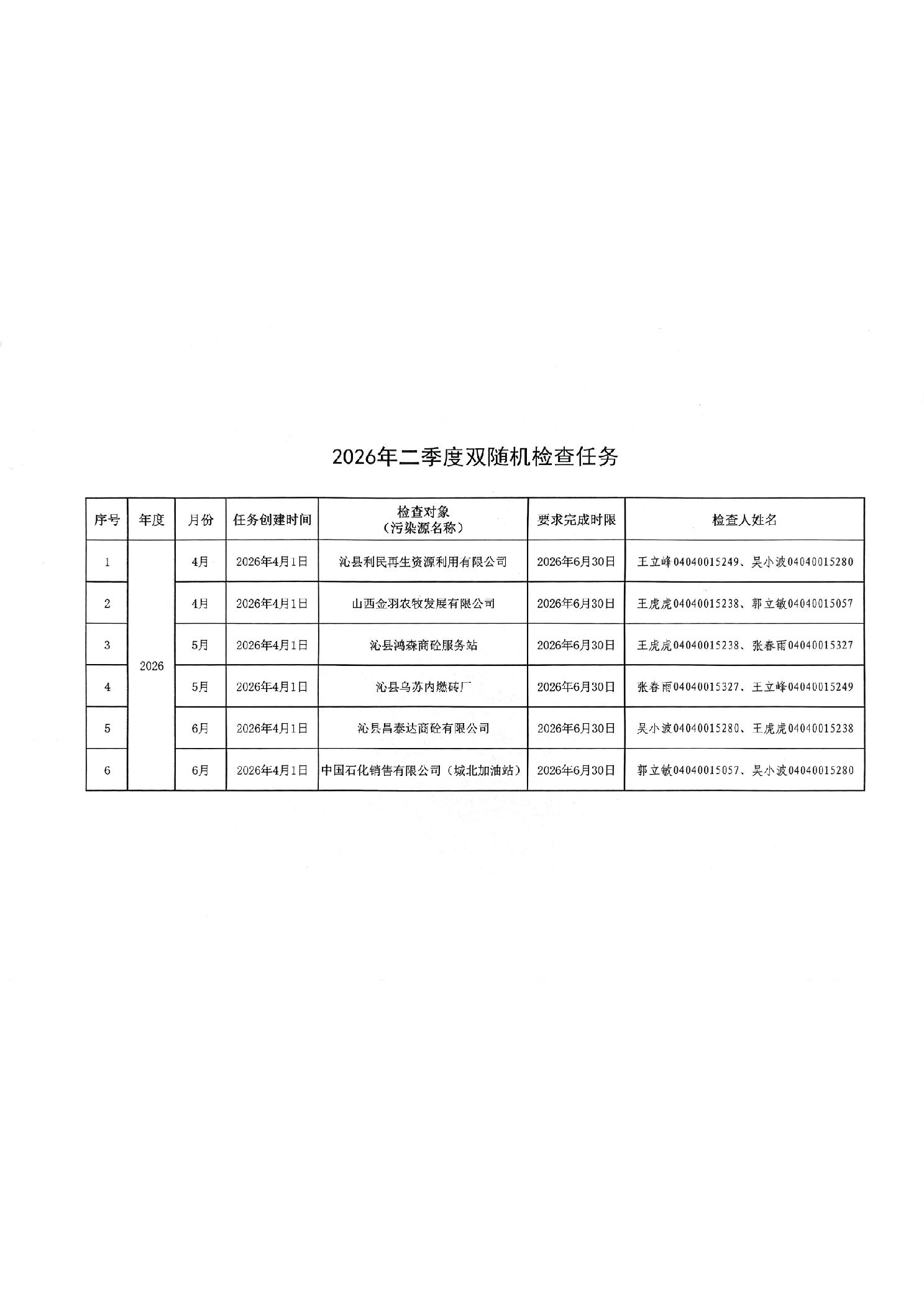| 發(fā)文機(jī)關(guān):長(zhǎng)治市生態(tài)環(huán)境局沁縣分局 | 主題詞:2026年二季度雙隨機(jī)檢查任務(wù) |