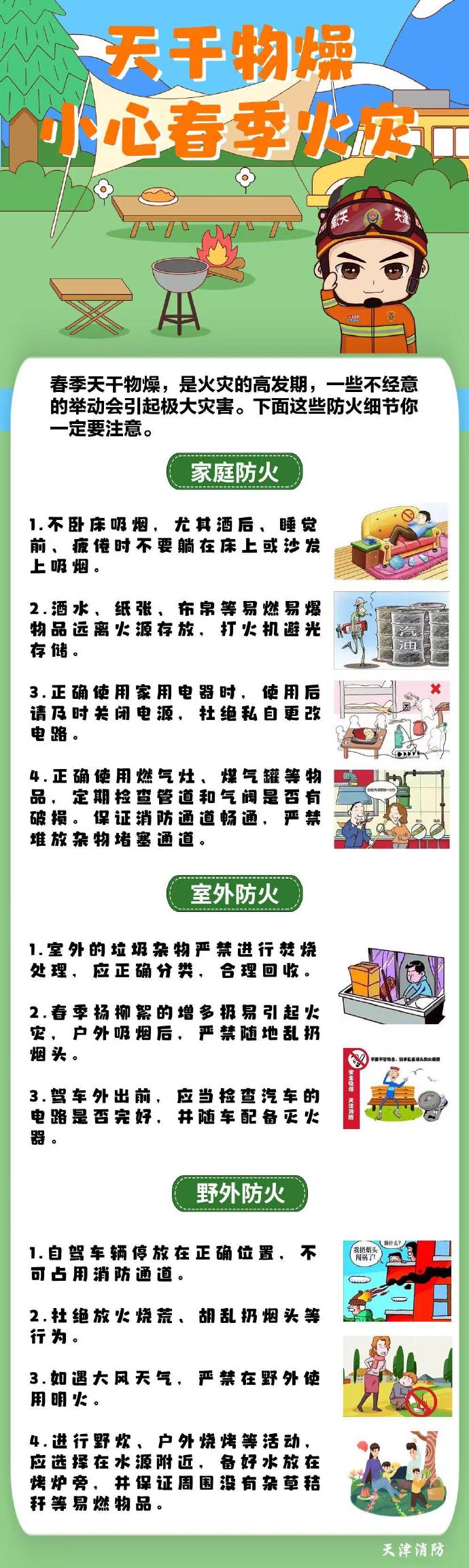 春季天干物燥,是火災的高發期,一些不經意的舉動就可能會引起極大災害。家庭防火、室外防火、野外防火分別要注意哪些細節?一起了解一下↓↓
