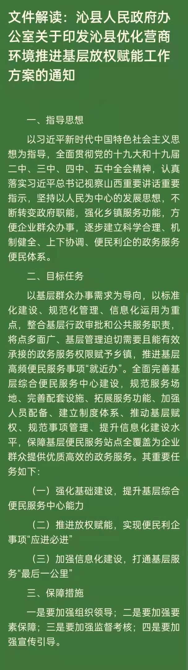 原文鏈接:沁縣人民政府辦公室關于印發沁縣優化營商環境推進基層放權賦能工作方案的通知