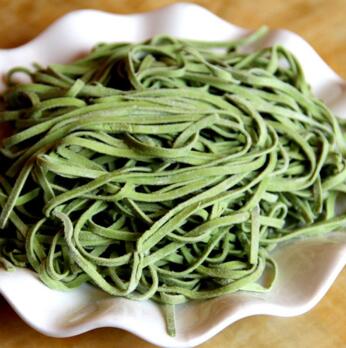 手工桑葉掛面選用沁縣康禾公司有機桑葉,經真空速冷超精微粉碎至300目以上細度,使桑葉掛面營養更豐富、色澤更均勻;面粉選用了沁縣康禾公司石磨面粉,低速研磨,低溫加工,不會破壞小麥中的營養物質,最大程度地保留了小麥中的蛋白質、面筋質、胡蘿卜素、碳水化合物、鈣、磷、鐵、維生素B1、B2等各種營養物質,特別是石磨面粉中的胡蘿卜素和維生素E是其它面粉的18倍。低速研磨特點又保持了面粉的分子結構,口感柔韌、麥香濃郁、營養價值更高。
